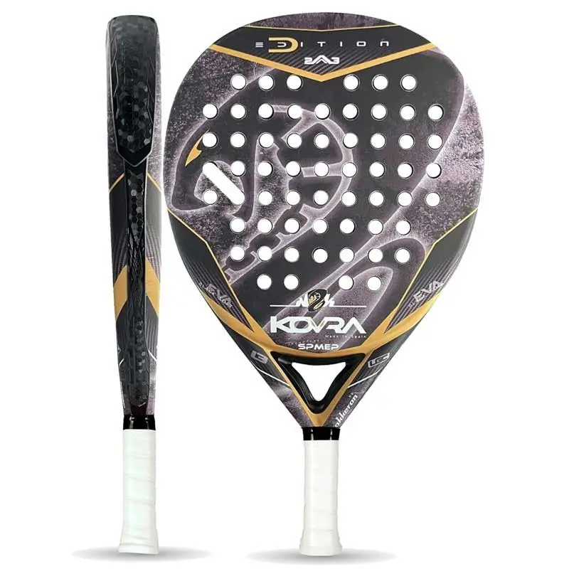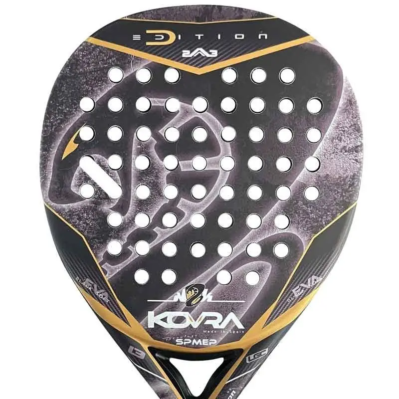 La raquette Akkeron Kovra Edition A23 est une raquette polyvalente et équilibrée, offrant un excellent contrôle de frappe et une très grande puissance, le tout avec une très bonne stabilité. Sa gomme Eva Black, moyennement souple, moyennement dense, offre beaucoup de contrôle du fait de sa densité supérieure à la gomme Eva Soft, avec une puissance brute au rendez-vous notamment au smash. Vernis rugueux accentuant les effets. C’est une raquette polyvalente à 100% dans tous les compartiments du jeu, vous permettant d’exploiter tout votre potentiel au padel.